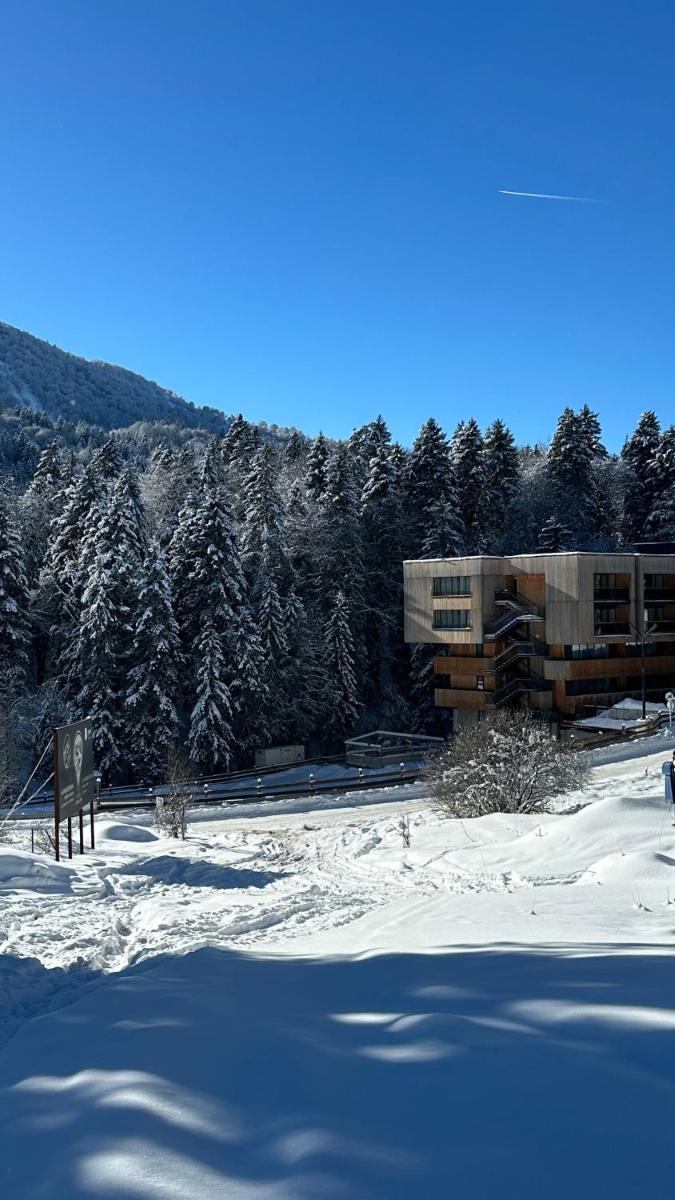 Het pand is gunstig gelegen aan de onderkant van het skigebied Kokhta-Mitarbi.