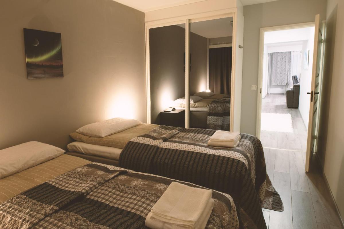 Genesteld op loopafstand van verschillende opmerkelijke locaties zoals Rovaniemi Stadium, Bio Rex en Korundi - House of Culture, zullen bezoekers zich ondergedompeld bevinden in een levendige sfeer vol opwinding en plezier. Het appartement heeft twee slaapkamers, een ruime woonkamer en een volledig uitgeruste keuken compleet met een vaatwasser en waterkoker, waardoor maaltijdbereiding een briesje maakt. Extra voorzieningen zijn onder meer een eigen badkamer met een douche, waardoor gasten voldoende comfort en gemak bieden.