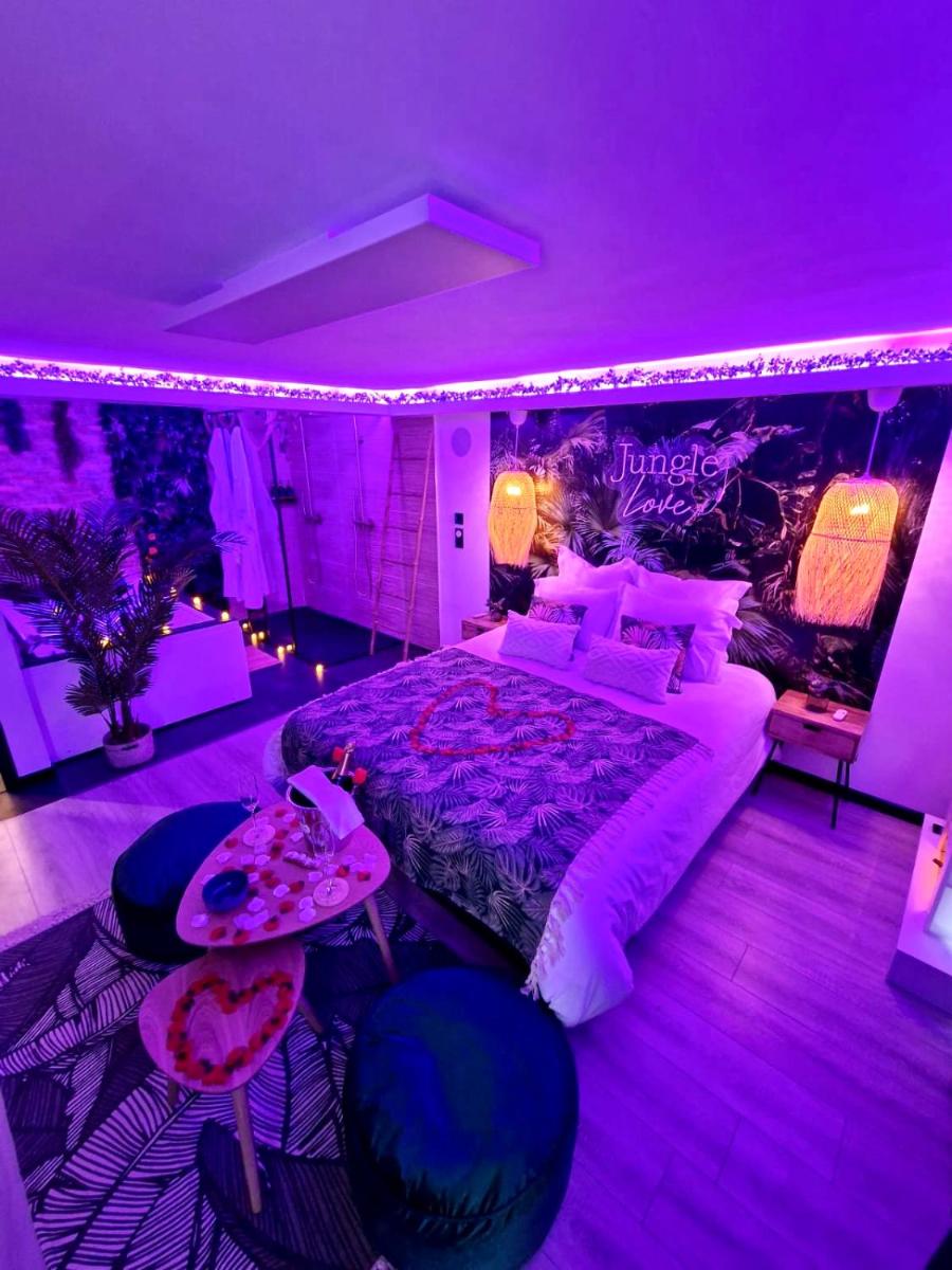 De Loveroom Jungle Love Proche Disneyland Paris biedt luxueuze accommodaties op slechts 1,9 km van het RER -station van Val d'Or Europe in Serris. Dit charmante pand heeft een serene buitenomgeving met een eigen ingang en state-of-the-art functies zoals een bubbelbad en volledig uitgeruste keuken. Gasten kunnen na een dag in het pretpark ontspannen door te genieten van de gratis toegang tot de spa -faciliteiten, waardoor ze vernieuwd en verjongd terugkeren. Gelegen op ongeveer 22 km van Gare de Lyon en 22 km van Opéra Bastille, maakt de nabijheid van deze grote attracties het een ideale keuze voor bezoekers die zowel de stad als de entertainmentopties verkennen. Met gemakkelijke toegang tot het populaire themapark en verschillende culturele sites, is de Loveroom Jungle Love Proche Disneyland Parijs geschikt voor reizigers die op zoek zijn naar een gedenkwaardig verblijf in de buurt van een van de meest geliefde bezienswaardigheden van Frankrijk.