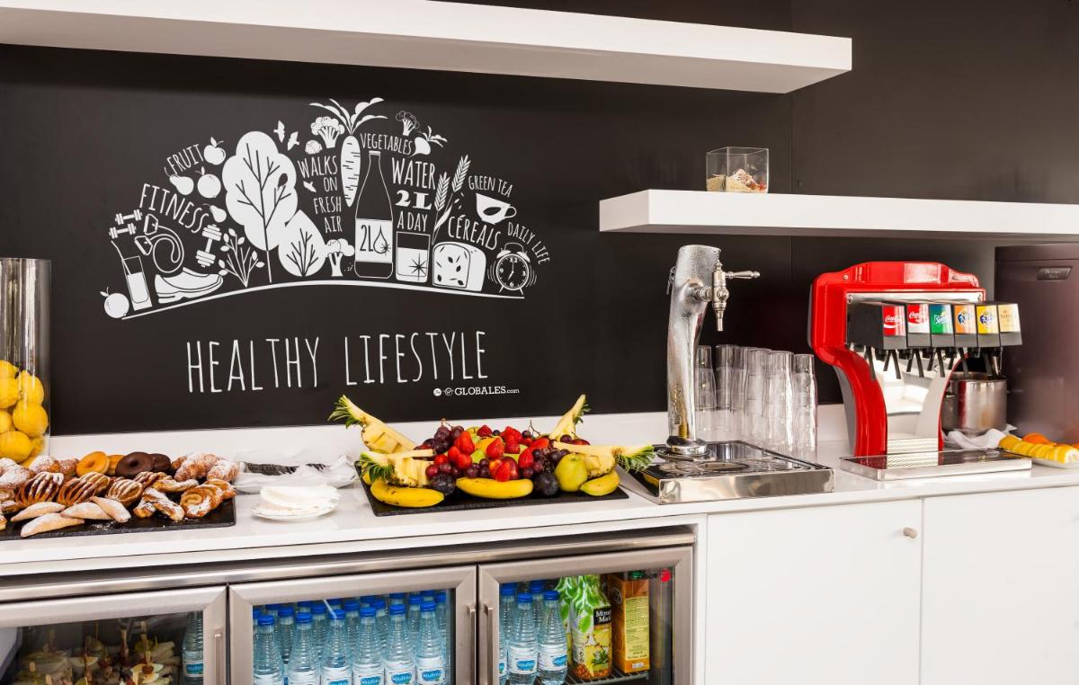 Hotel Globales Palmanova heeft een ruim buitenzwembad en een serene zonterras, genesteld in een rustig gebied van Palma Nova, Mallorca. Slechts 984 voet van de pittoreske kustlijn, kunnen gasten genieten van een adembenemend uitzicht terwijl ze de zon opzuigen. Elke kamer in dit luxueuze etablissement heeft een privébalkon, zodat gasten zich volledig kunnen onderdompelen in hun omgeving.