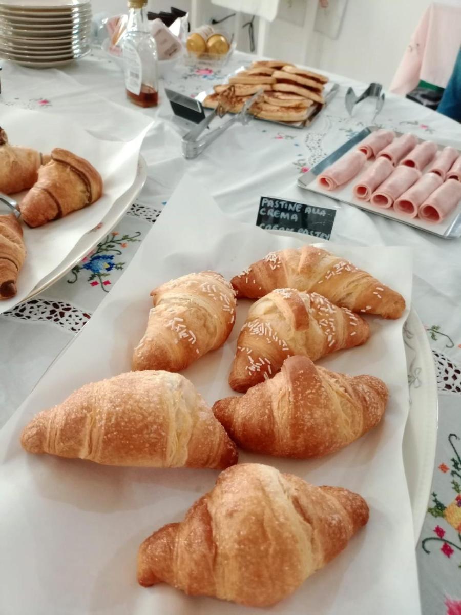 Buffet en Italiaanse ontbijtopties met verse gebak, fruit en sap zijn dagelijks beschikbaar in het pension.