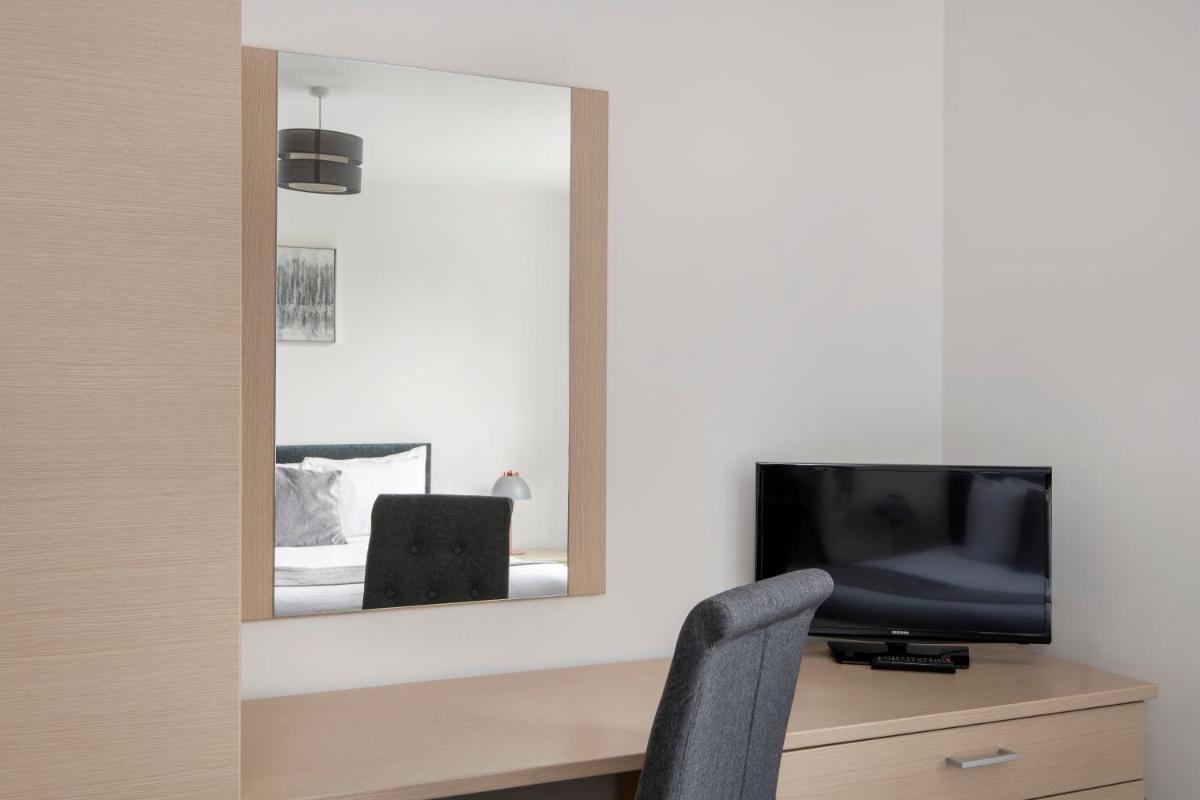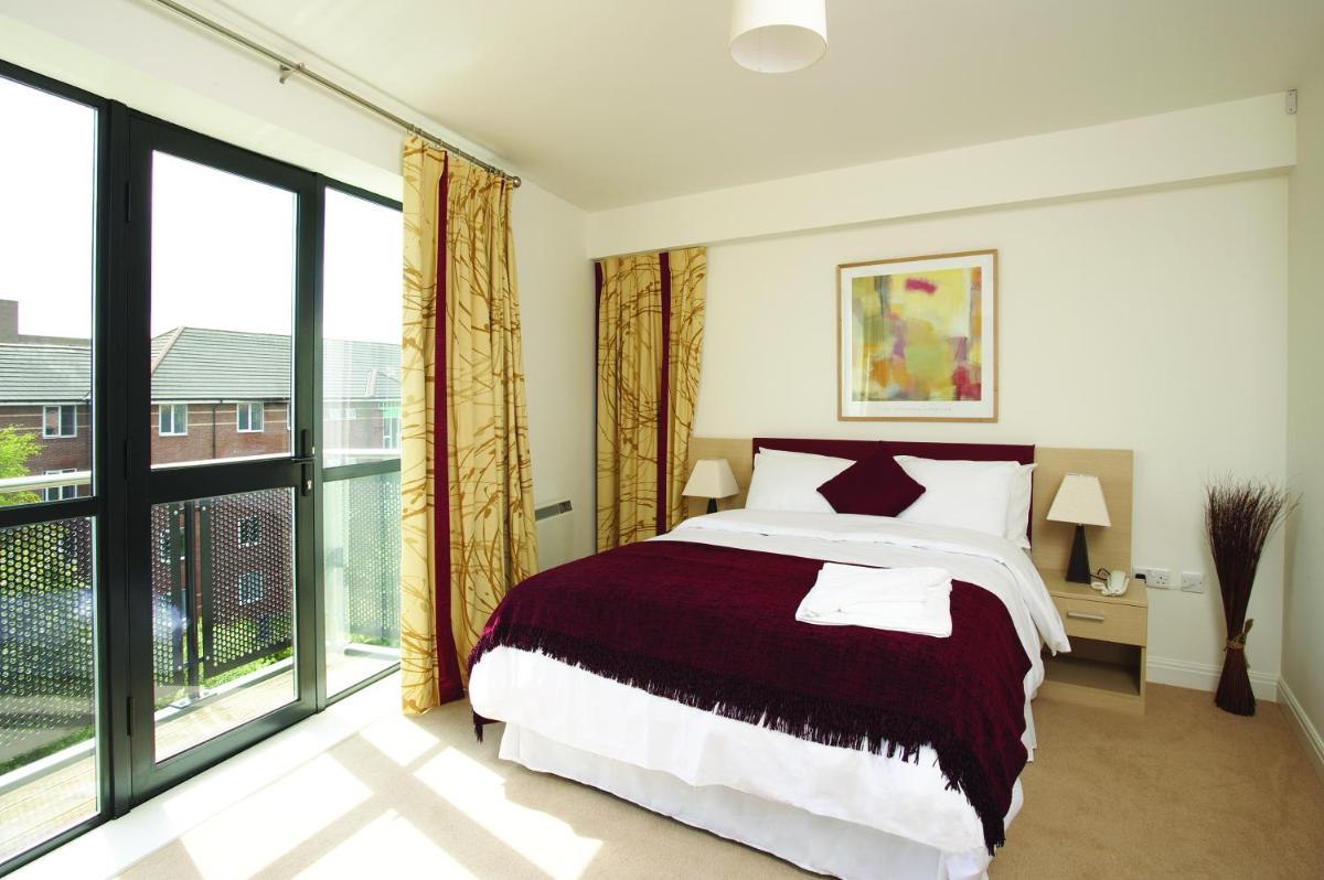 De appartementen bevinden zich in een rustige buurt op slechts 5 minuten lopen van het stadscentrum, en op slechts 15 minuten rijden van verschillende bedrijfsparken, die een reeks hoofdkantoor van het bedrijfshuis bevatten, waaronder Rolls Royce, Bombardier Transportation en Toyota.