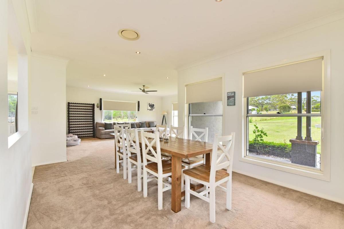 De Ponderosa on Merewether, gelegen in Rothbury, biedt een luxe verblijf in de buurt van Hunter Valley Gardens binnen een handige straal van 14 kilometer. Met ruime accommodaties met woonruimtes met airconditioning, een privébad met een adembenemend uitzicht en een goed uitgeruste keuken, verwelkomt dit pand gasten met een vleugje elegantie en comfort. Gasten genieten toegang tot een terras, gratis privéparkeren en gratis Wi-Fi, waardoor hun verblijf zowel plezierig als probleemloos is. Het niet-rokende beleid van het onroerend goed zorgt voor een vreedzame omgeving voor iedereen die hier blijft. Met zijn twee badkamers die een bubbelbad aanbieden, kunnen gasten na een lange dag ontspannen. Een openlucht eetgedeelte biedt een perfecte plek om de ambiance op te nemen, terwijl de open haard warmte toevoegt tijdens koelere avonden. De nabijgelegen tuininstelling verbetert de algehele ervaring, waardoor gasten kunnen genieten van de natuur, zelfs als ze binnenshuis zijn. Voor degenen die ontspanning zoeken, omvat het pand barbecuefaciliteiten en een privéterras waar ze kunnen genieten van gastronomische maaltijden Al Fresco. Een snelle rit naar de luchthaven van Newcastle maakt reizen gemakkelijk en efficiënt, waardoor een naadloze overgang tussen bestemmingen zorgt.