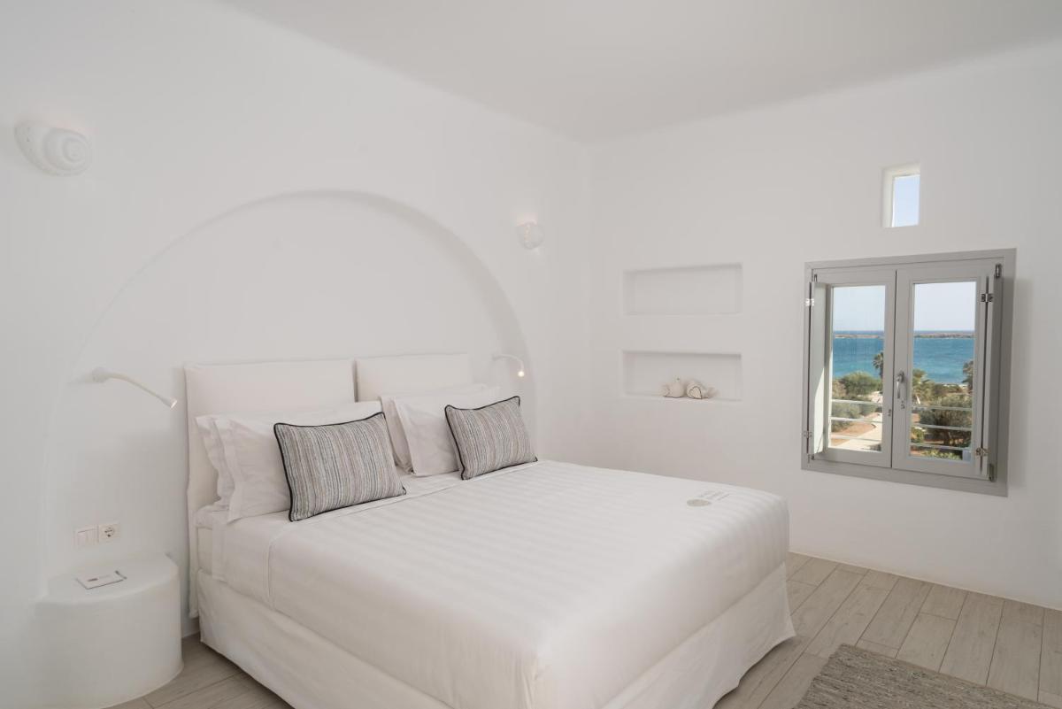 White Dunes Luxury Boutique Hotel, gelegen in Santa Maria, biedt een luxe ervaring met suites in Cycladic-stijl met adembenemende Egeïsche uitte van Egeïsche zee en uitgestrekte balkons of terrassen. Geniet van een verfrissend seizoensgebonden buitenzwembad met prachtige zeewista's, aangevuld met een snackbar bij het zwembad en een à la carte restaurant. Gratis Wi-Fi is beschikbaar in het terrein.
